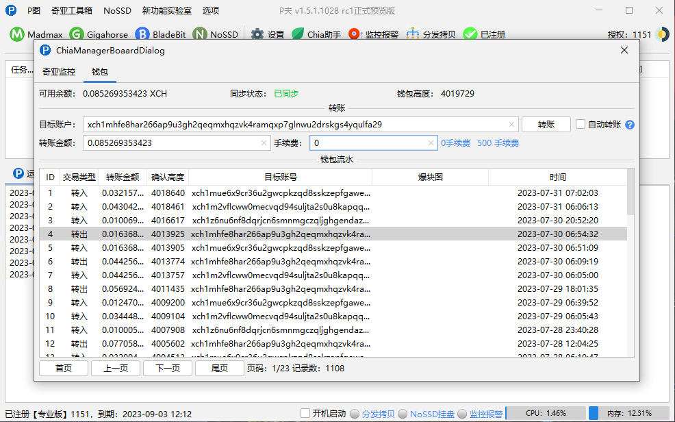【转账助手】原本是个单独工具,现在已经迁移到P夫【Chia助手】中,依然是免费功能。