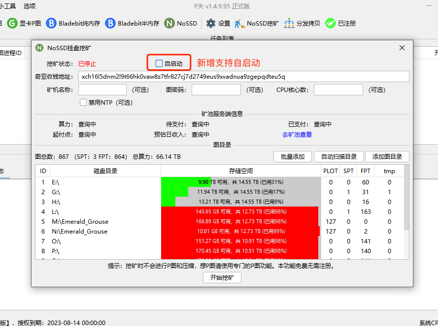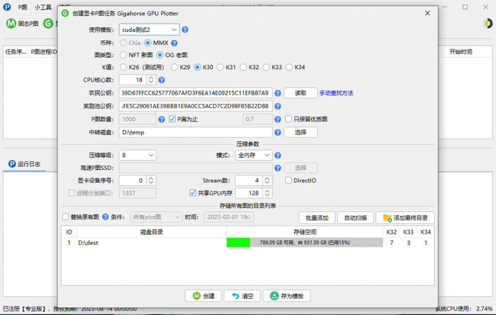 - 新增Gigahorse显卡P图。暂不支持Chia图,但以后肯定会支持,P图速度、设置方法等均可作为以后P奇亚图的参考
