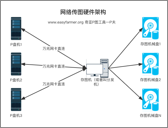 目前比较好的P图方案应该是Linux系统P图到SSD,然后通过局域网共享拷贝到【存图机】的机械盘上。 下文例子仅使用3台P盘机,更多的P盘机、存图机、网络拓扑以及单个存图机的带宽上…