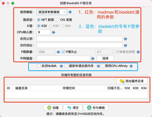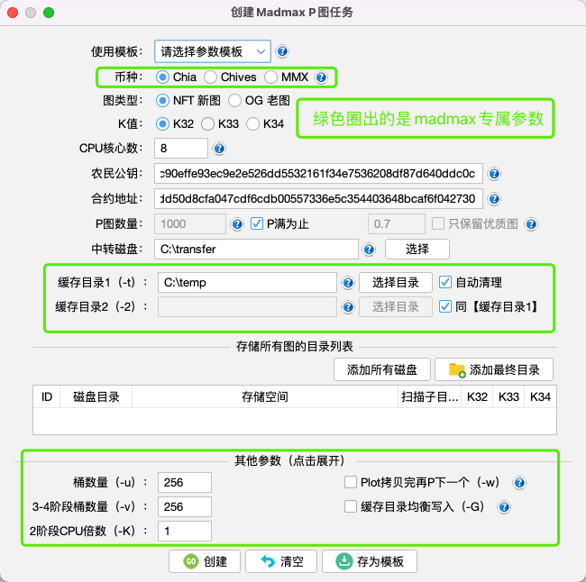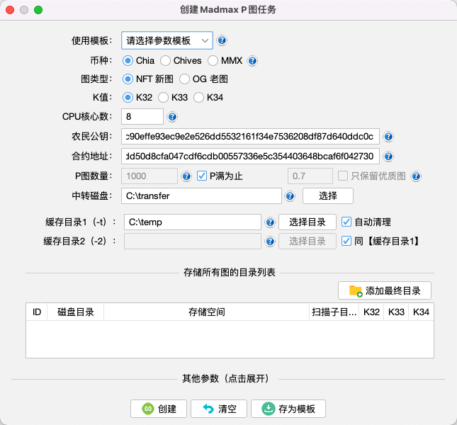 K值:P图的规格大小。Bladebit目前只支持K32,madmax最高支持K34,madmax P mmx图最低可选k26