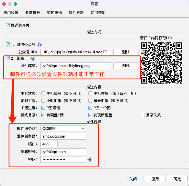软件运行的一些关键信息可以推送到手机,推荐使用邮箱推送。
